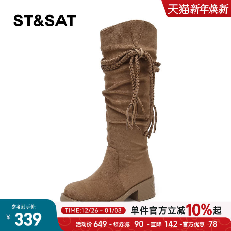 天美意加绒弹力时装 衣橱直播间 靴过膝长靴女冬短靴 所有女生