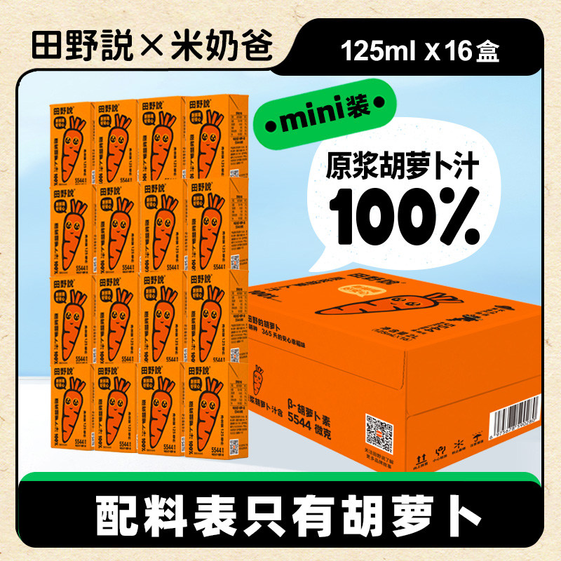 田野说原浆胡萝卜汁果蔬汁蔬菜汁儿童健康果蔬汁纯胡萝卜汁125ml