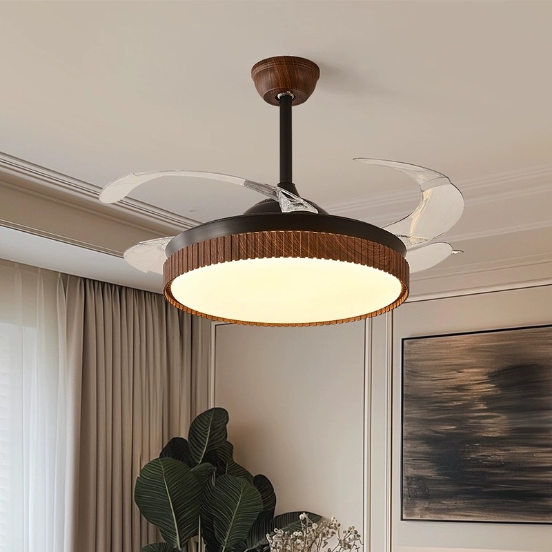 中古风吊扇灯风扇灯静音胡桃木色abs扇叶高端智能客厅卧室餐厅灯