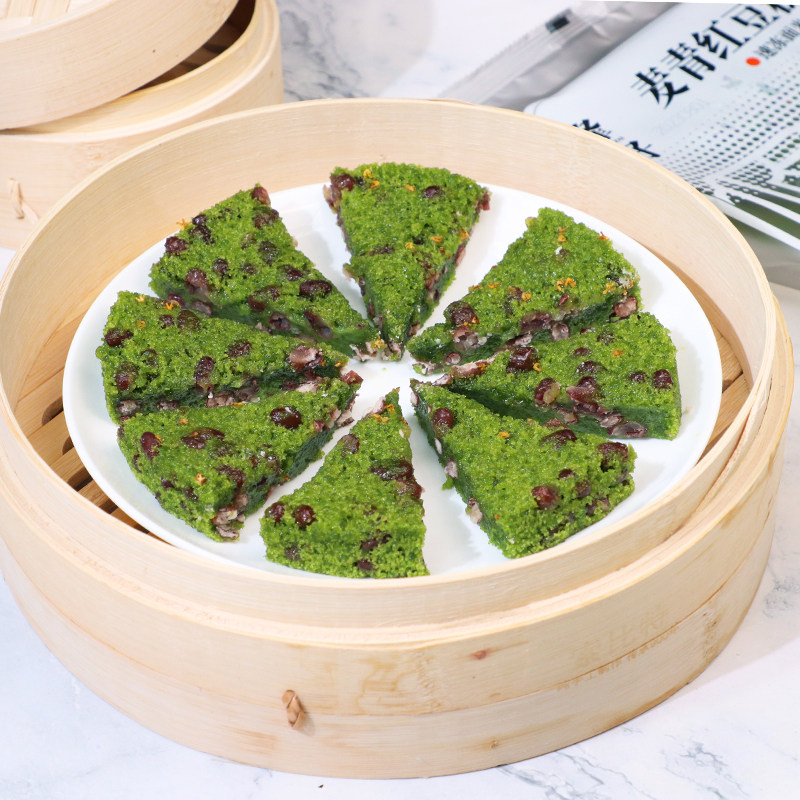 峰仔麦青红豆糕350g 5袋早餐半成品糯米松糕桂花糕大麦苗汁米发糕