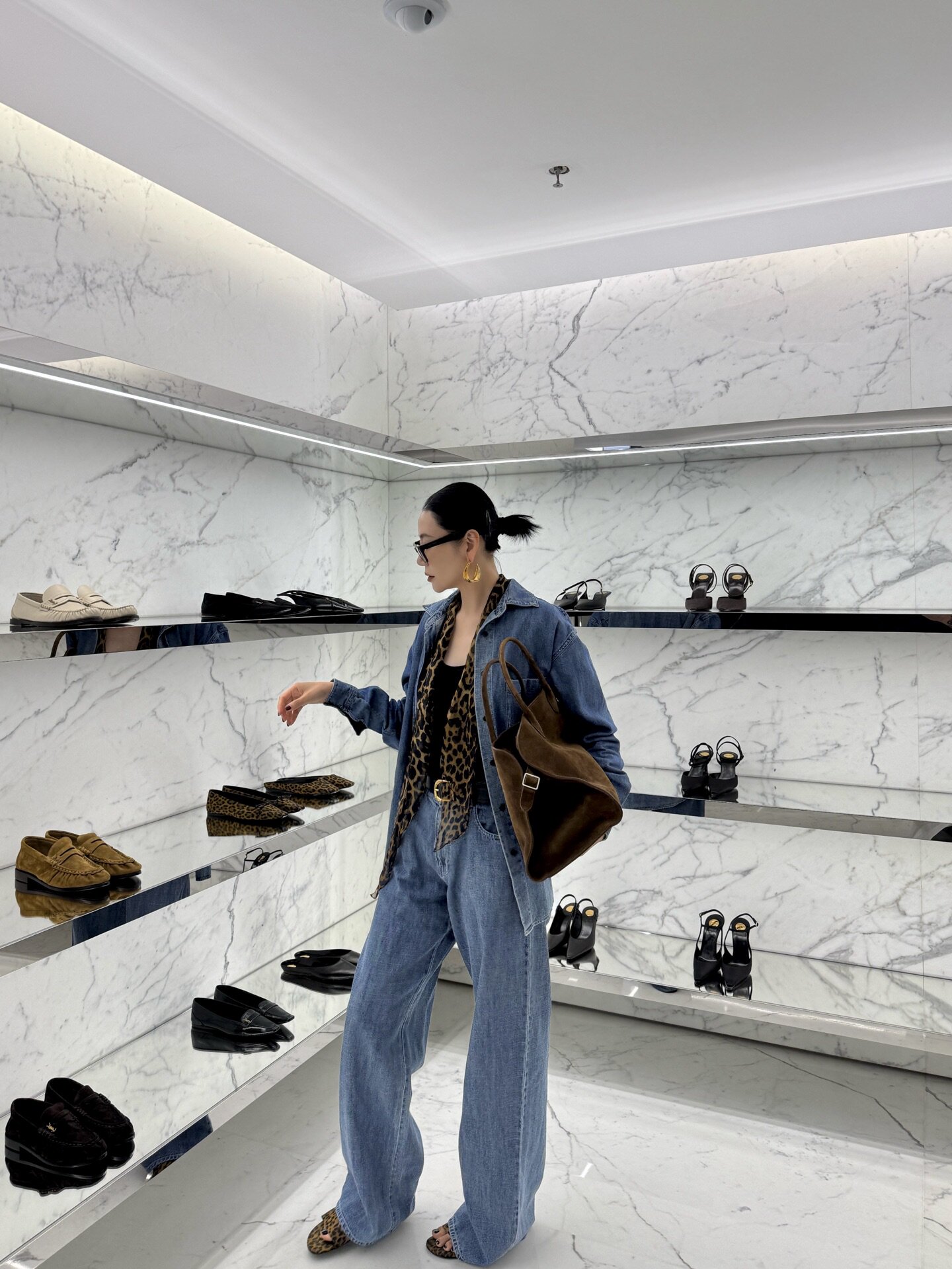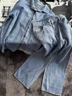 亚麻显瘦牛仔色套装 复古水洗法式 小众设计师 法奢套装 自带调性