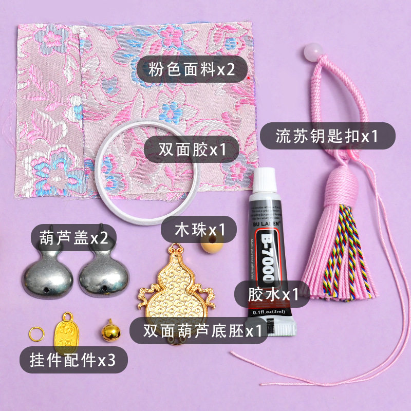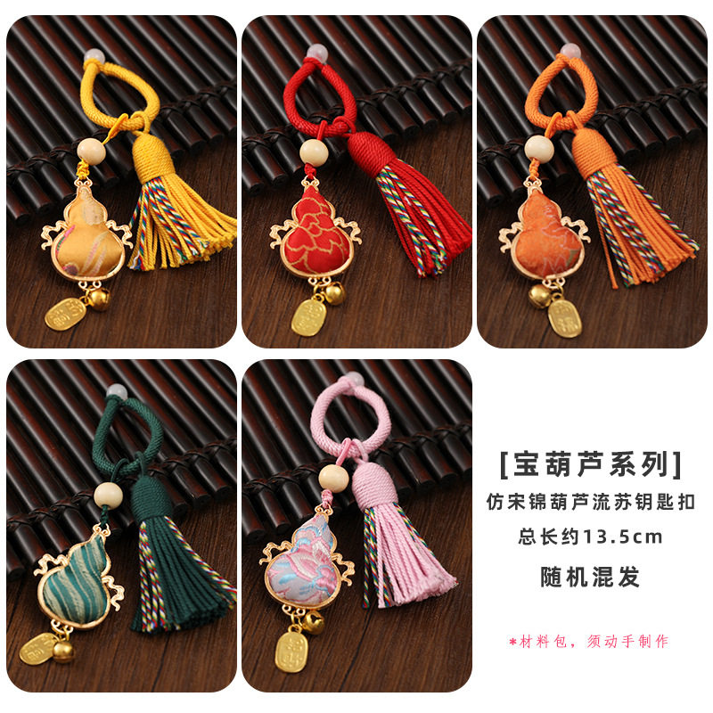 手工宋锦葫芦钥匙扣材料包吊坠底胚配件DIY挂件亲子沙龙礼物挂饰