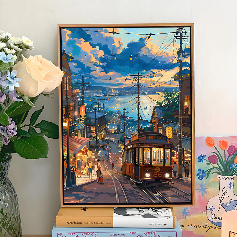 中国风千里江山图DIY数字油画手工绘填充涂色古风山水风景装 饰画
