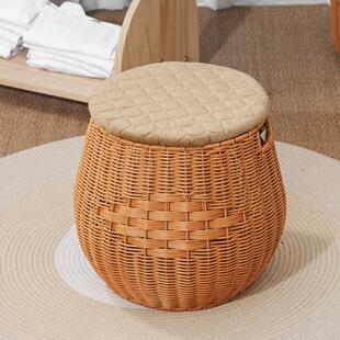 家用仿藤编藤椅阳台客厅小椅子榻榻米矮靠背椅单人圆形成人编织凳