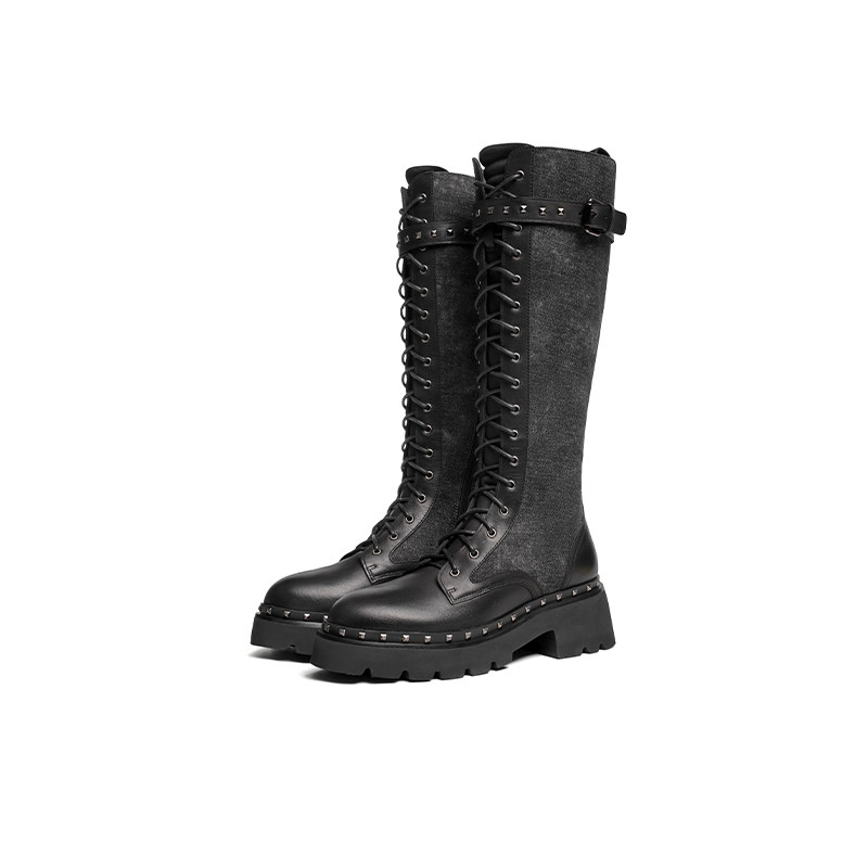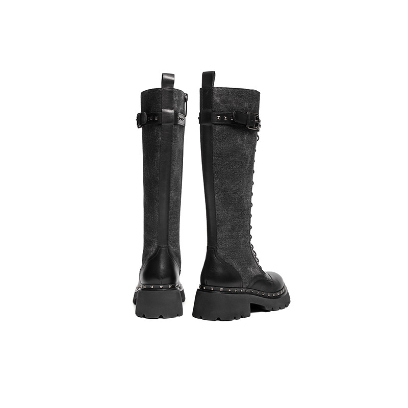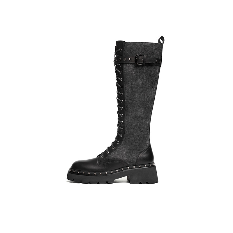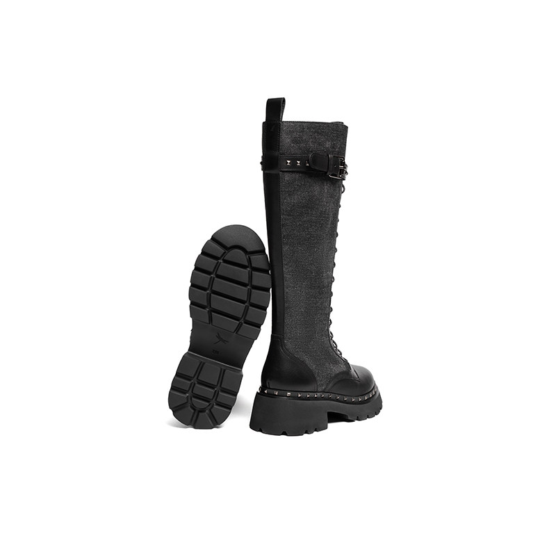 红蜻蜓长筒靴女方头粗跟后拉链正品 清仓 百搭骑士长靴高筒靴断码