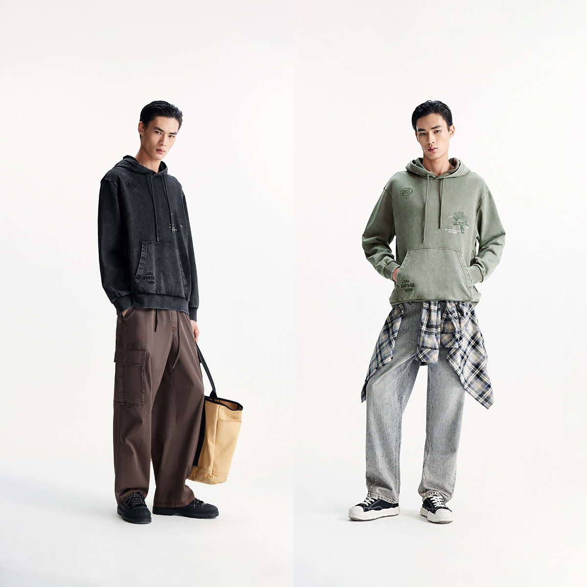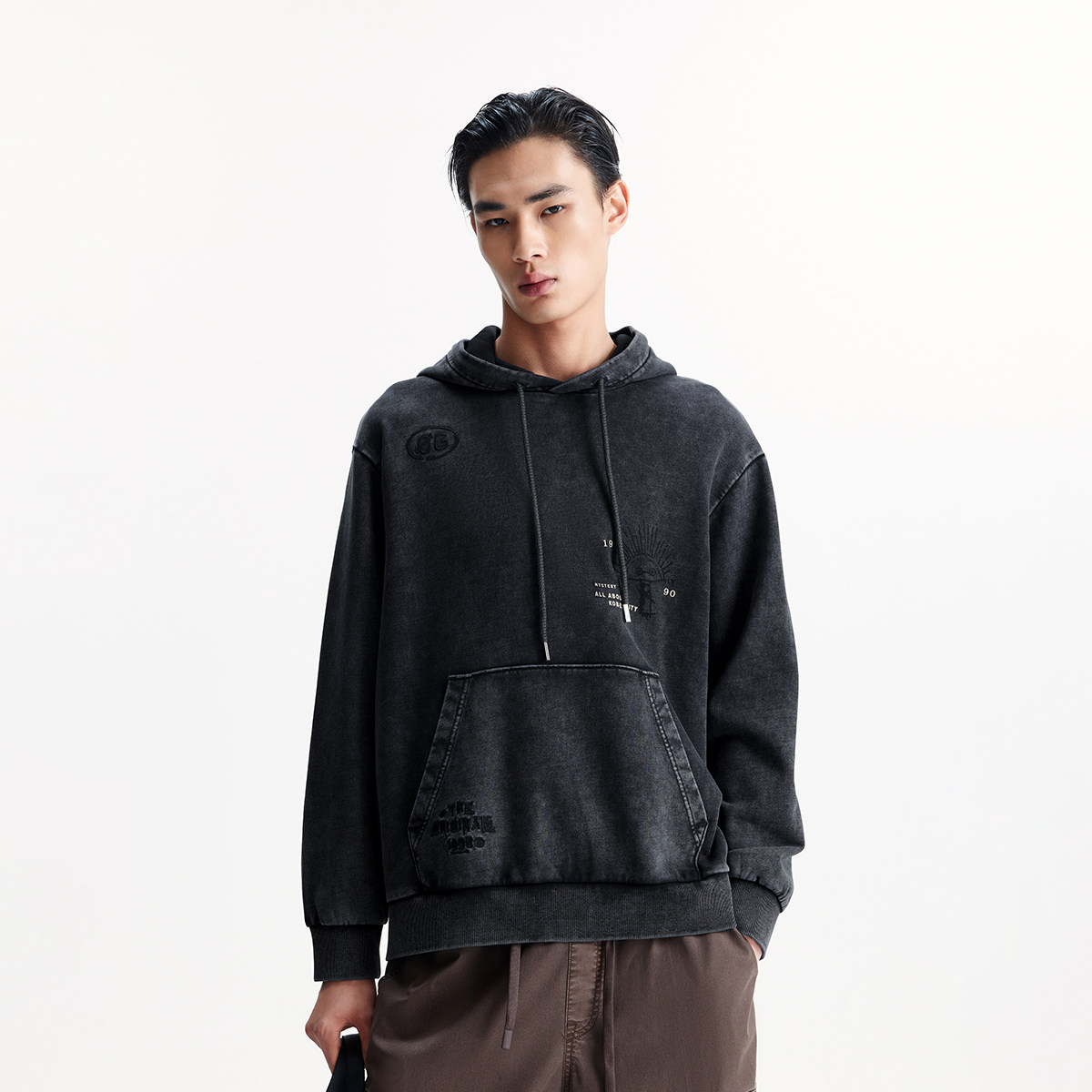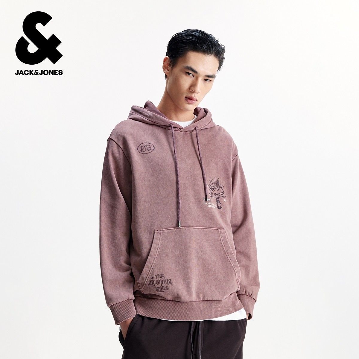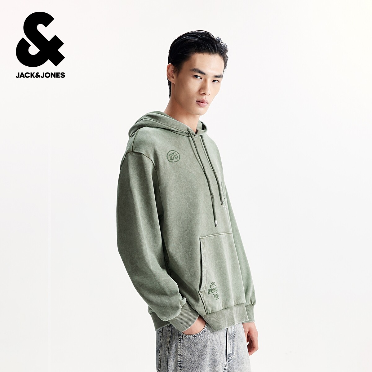 美式 新款 立体绣卫衣做旧水洗休闲纯棉宽松连帽 春季 杰克琼斯男装