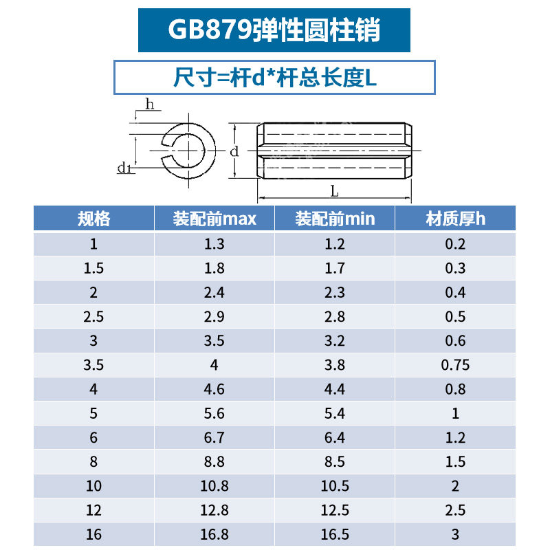 304不锈钢弹性圆柱销开口销弹簧空心销子定位销轴销钉m3m4m5m6m8L