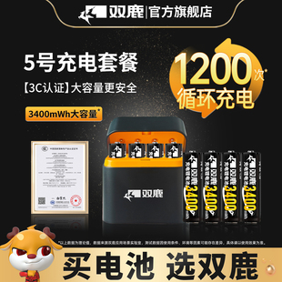 双鹿新能源5号充电电池正品 大容量适用遥控器玩具话筒无线鼠标键盘 1.5v锂电池3400mWh锂可充快充五号充电套装