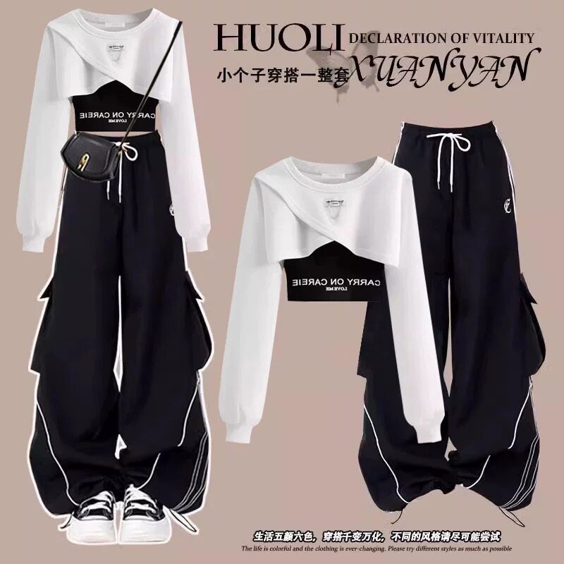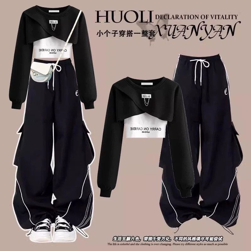 搭配一整套时尚 三件套装 新款 裤 女 甜辣高级感卫衣休闲运动工装 秋装