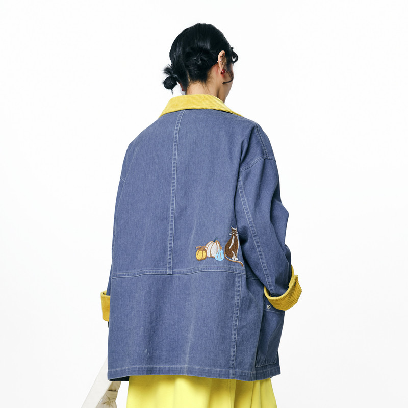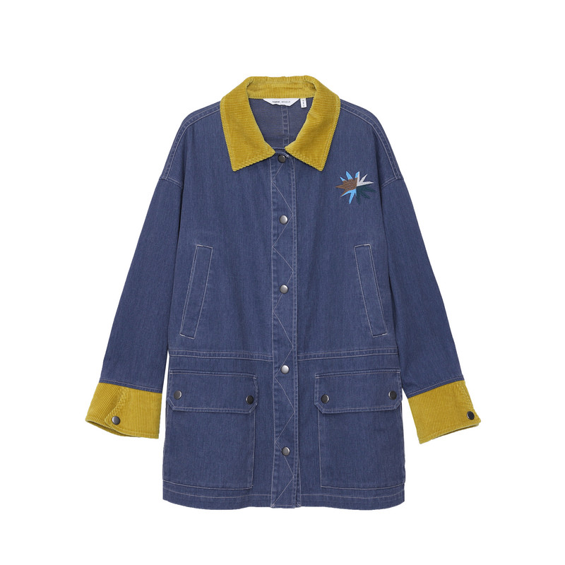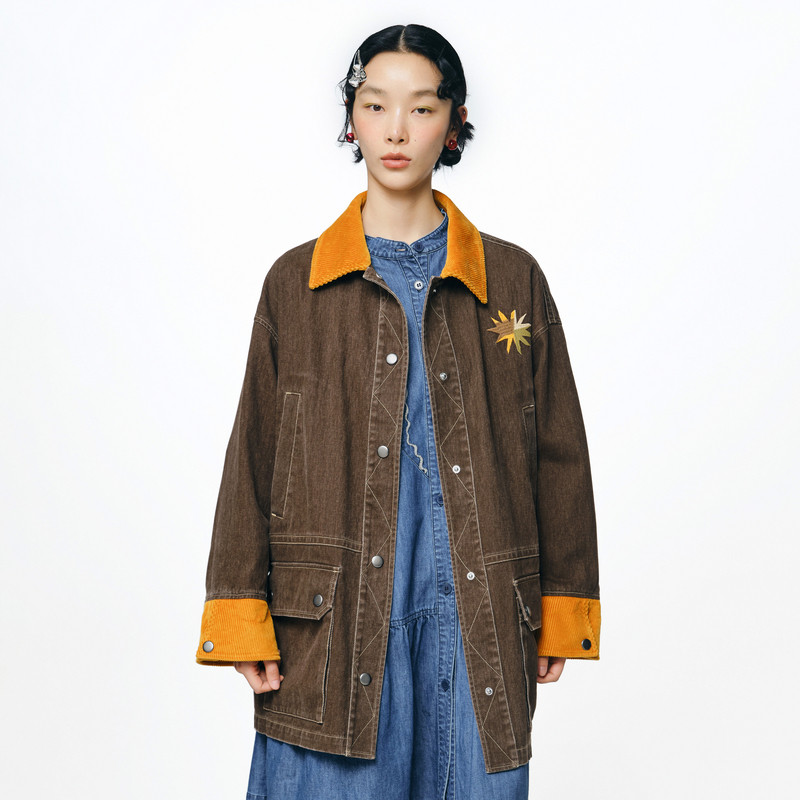 外套女 .FUN系列纯棉翻领四合扣口袋中长款 MOVEUP幻走2025秋季 新款