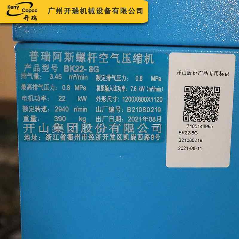 厂家螺杆空气压缩机BK22千瓦.3.4立方排气量开山空压机低碳环保