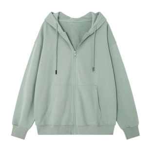 连帽春装 小个子宽松2026新款 卫衣外套女春秋薄款 纯棉绿色拉链开衫