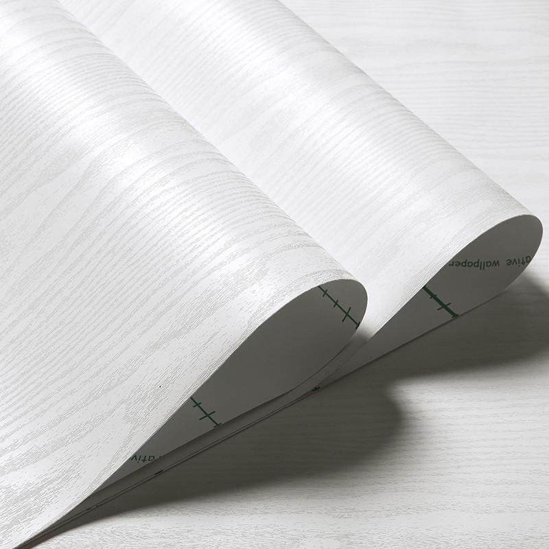 加厚自粘墙纸防水衣柜橱柜桌面旧木门改造壁纸白木纹家具翻新贴纸