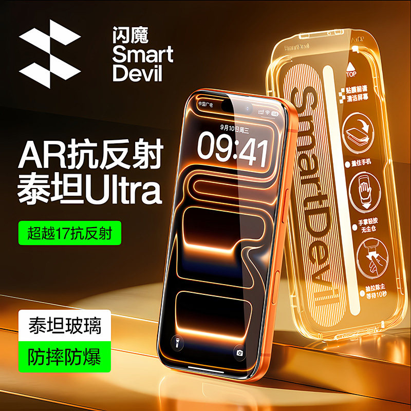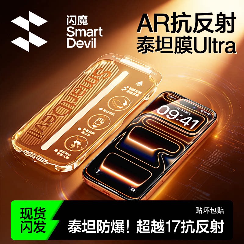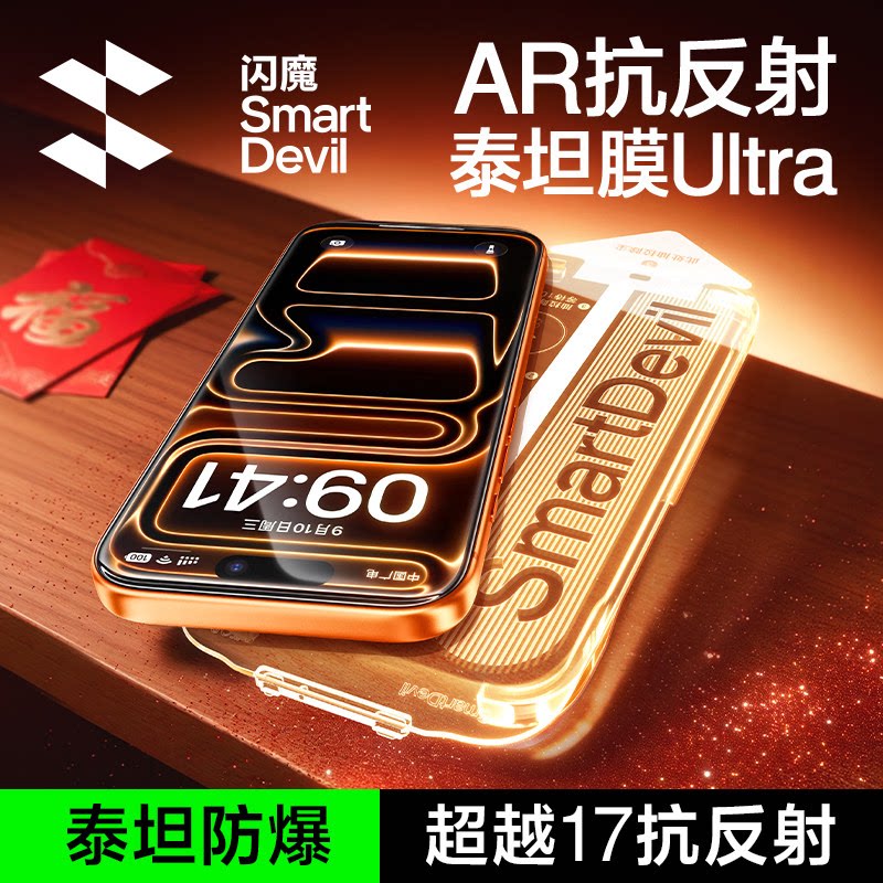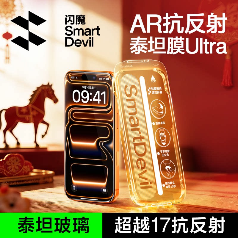 闪魔AR泰坦Ultra抗反射钢化膜新款 适用iphone17promax屏幕膜Air增透苹果16pro手机ip保护15贴膜14全覆盖防摔