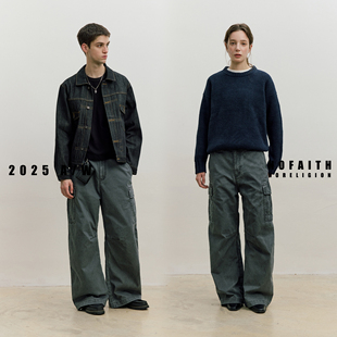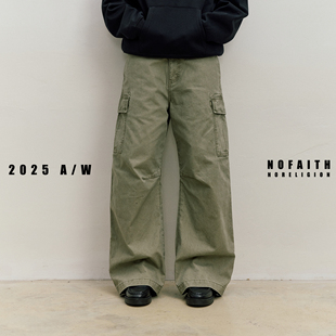 休闲长裤 男宽松百搭直筒法工裤 潮25FW 裤 NOFAITH水洗做旧弯刀工装