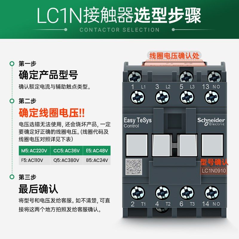 施耐德交流接触器LC1N95CC5N代替LC1E95CC5N一开一闭95A线圈AC36V