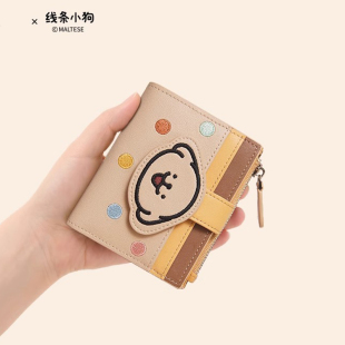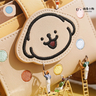 线条小狗大容量钱包卡包一体可爱收纳零钱包女生生日儿童礼物钱夹