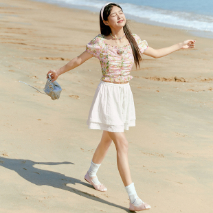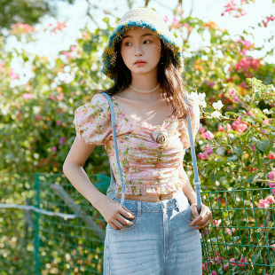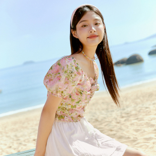 印花方领雪纺衫 乐町 新款 夏季 上衣C1CDE2214 小野新泽联名