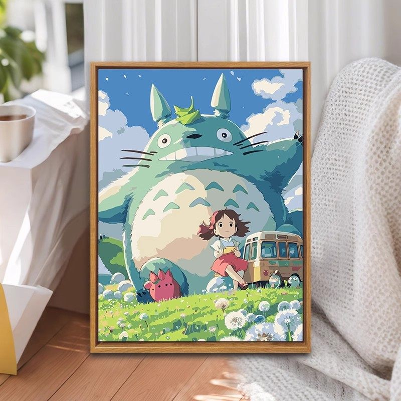宫崎骏龙猫卡通装 饰画成品仿油画风景动漫治愈唯美卧室客厅摆挂画