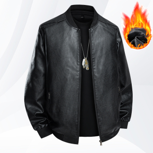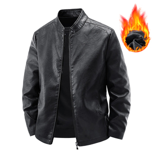 秋冬大码 加绒皮衣男春秋立领宽松皮商务休闲皮夹克潮青年机车外套
