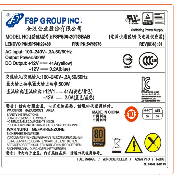 FSP500 11PP 20AGPAA HK600 p368 PCK010 适用联想10针电源500W