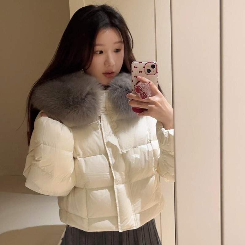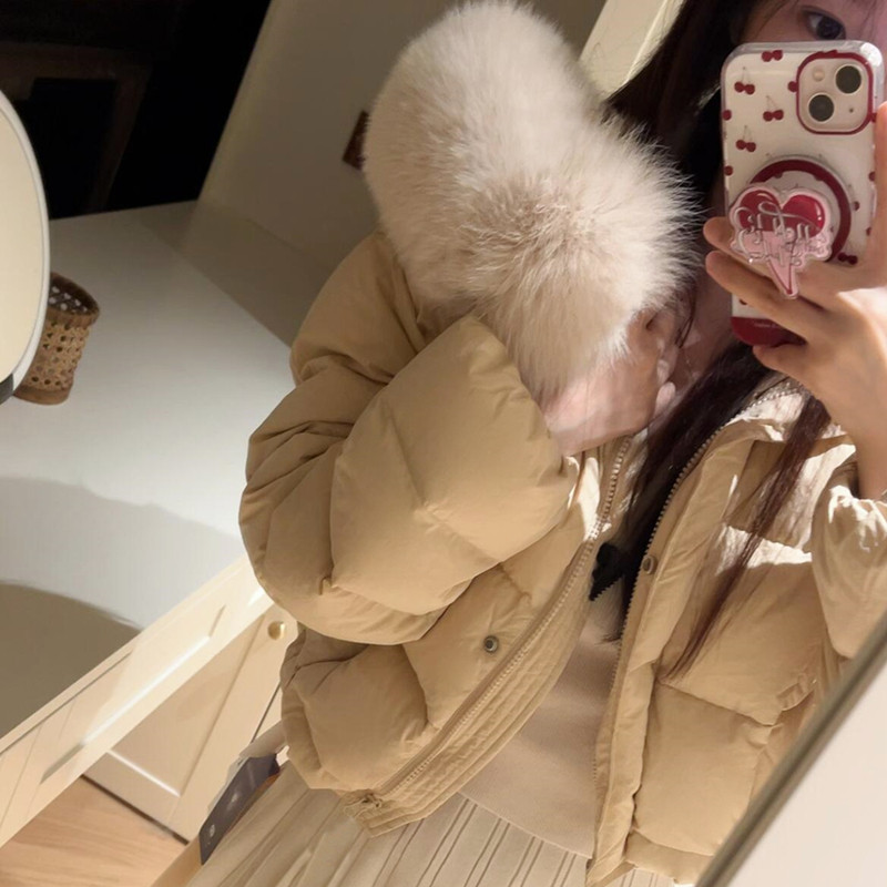 雪中飞25秋冬女韩版 甜美 廓形马卡龙狐狸毛羽绒服加厚外套长款