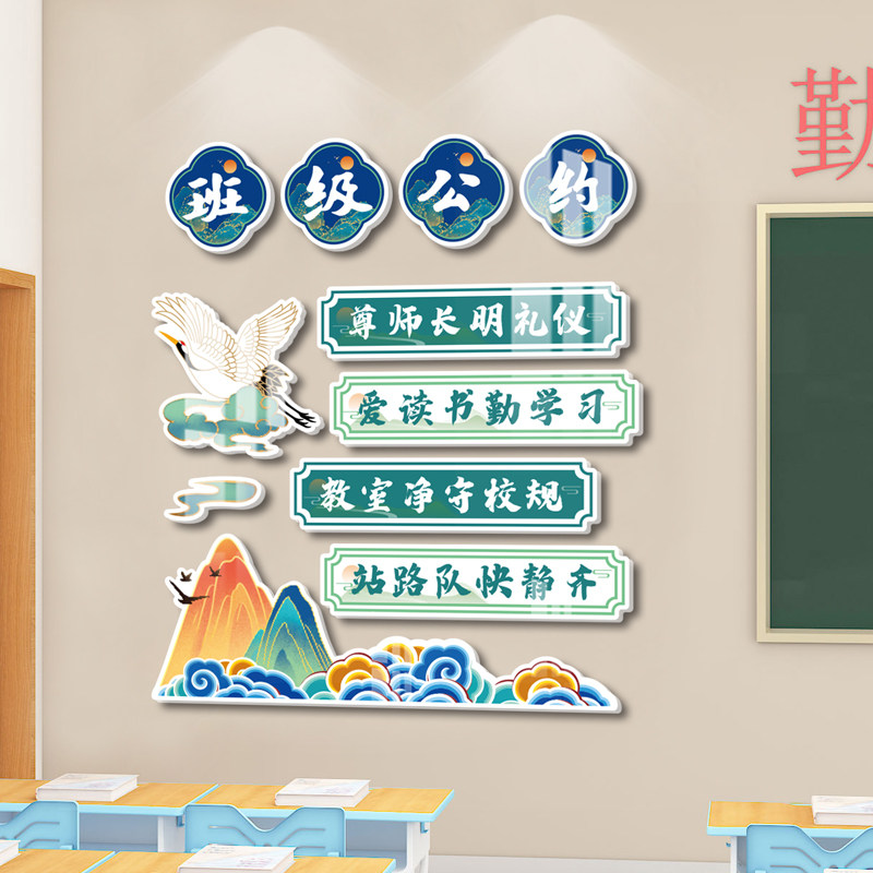 教室布置装 饰班级公约图书卫生间文化墙贴中队角成本墙背景3d立体