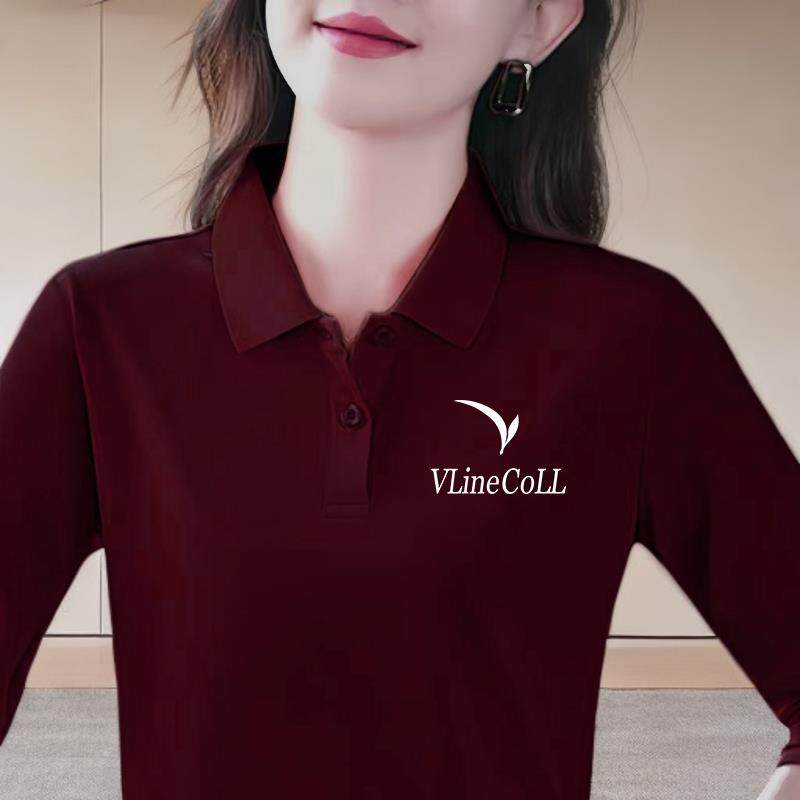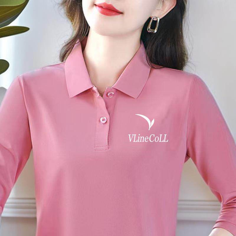 女拼接磨毛打底长袖 显瘦翻领刺绣POLO衫 上衣 假两件修身 FISSXS