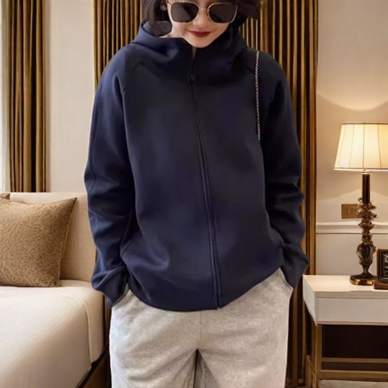 新款 春秋季 休闲运动服连帽上衣 拉链外套百搭大码 Fjwldy卫衣开衫
