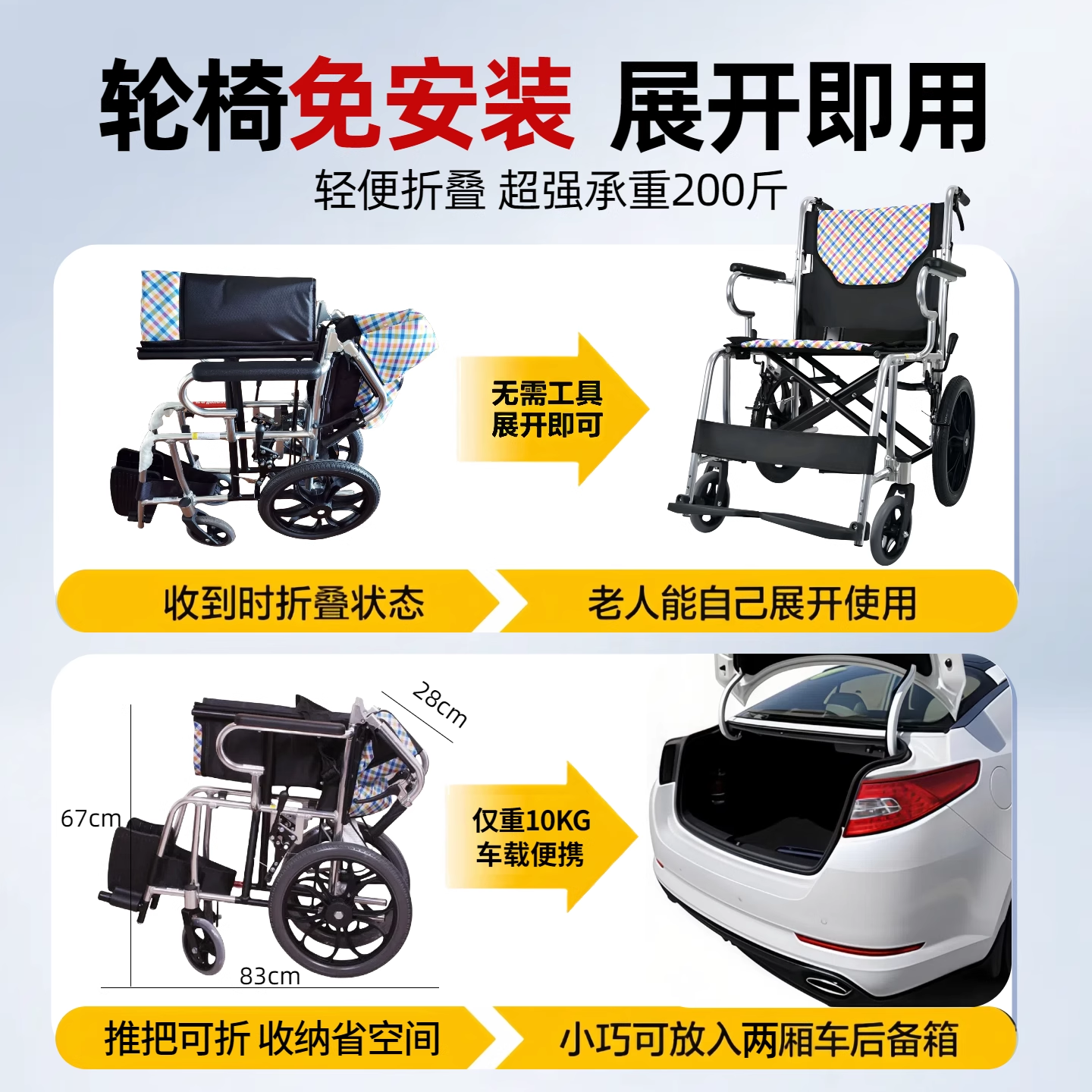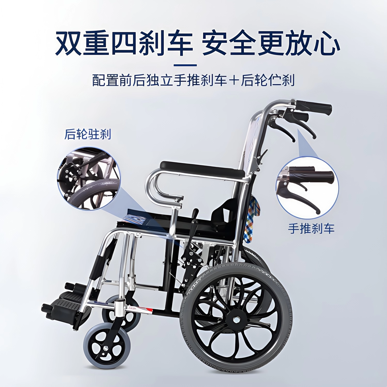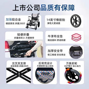 鱼跃轮椅H032C 超轻便携小轮老人旅行代步车 折叠轻便铝合金轮椅