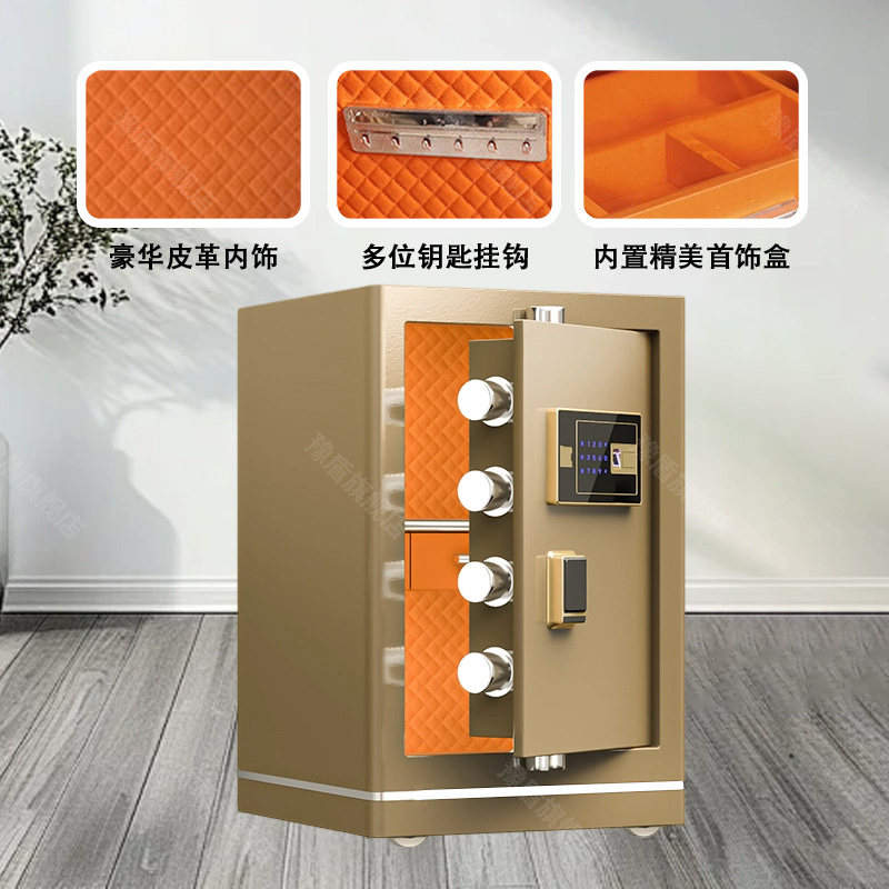 豫盾保险柜家用防盗2025新款 保险箱全钢床头柜可固定搬不走柜子办公保管箱 咖啡金小型wifi智能指纹电子密码