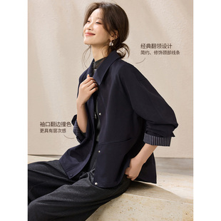 口翻领大衣女 含莱赛尔撞色袖 沫晗依美轻韩系都市外套2026春季 新款