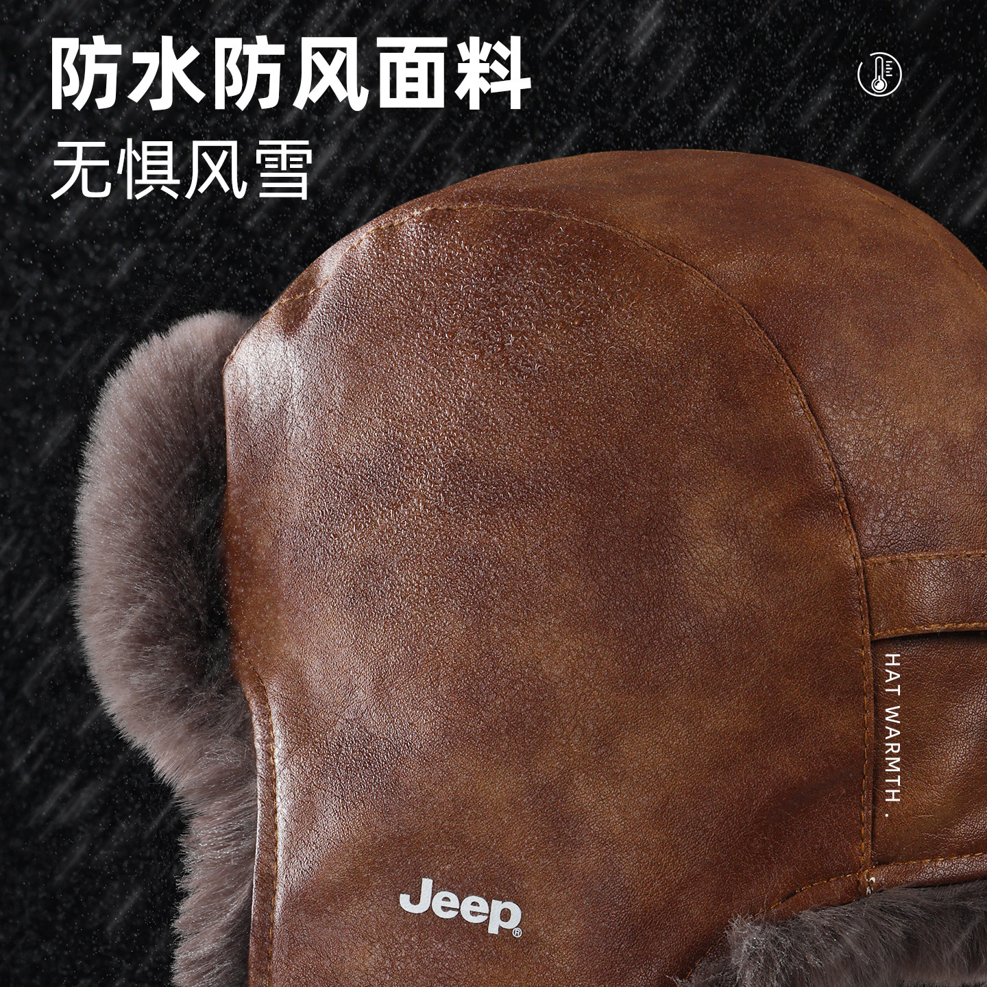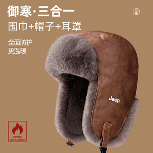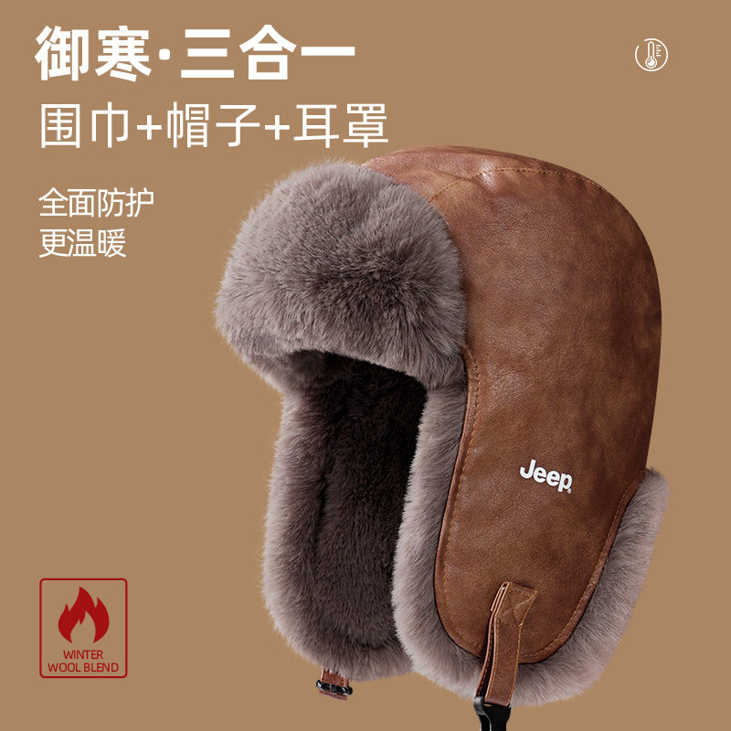 jeep吉普帽子男士 中老年保暖皮帽爸爸爷爷加绒加厚护耳雷锋帽 冬季