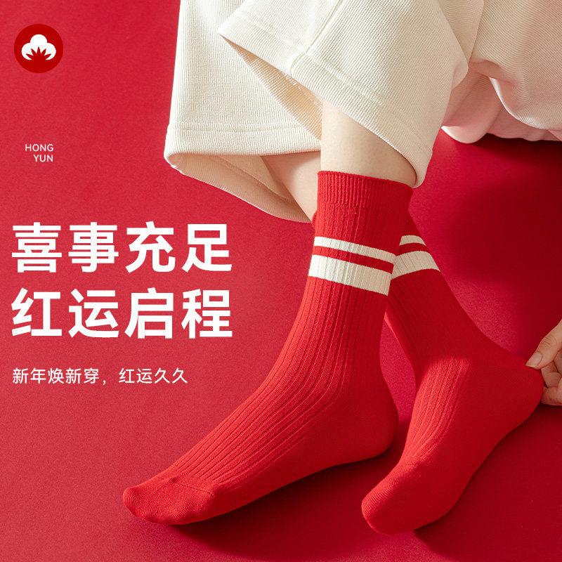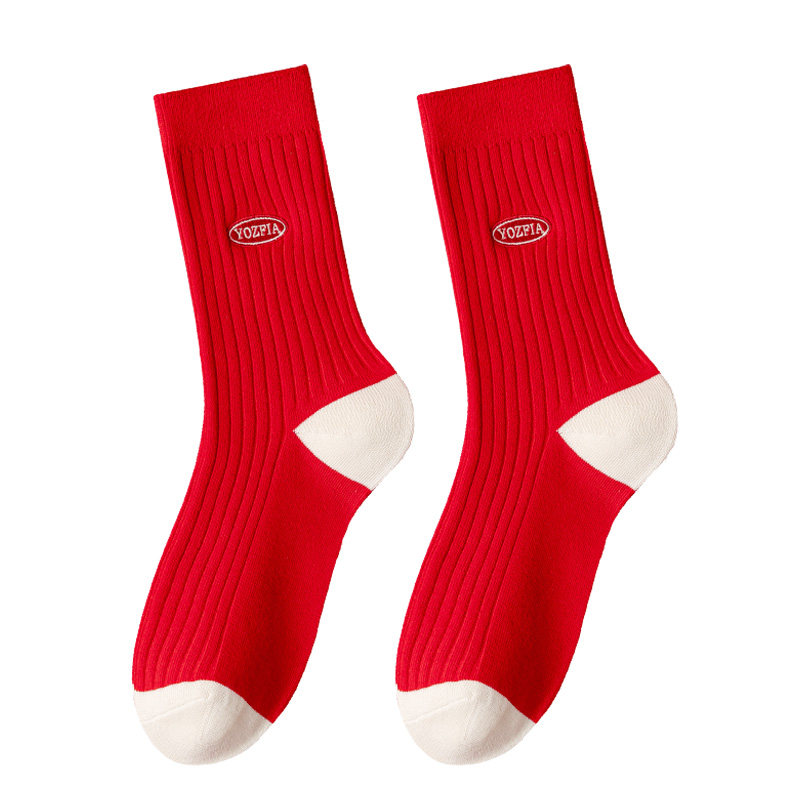 韩系中筒袜子女士纯色休闲长腰竖条纹堆堆吸汗防臭春秋款 美腿月子