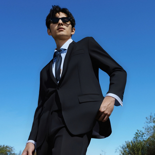 黑色西装 上班高端经典 圣得西西服外套2025秋新款 礼服男 含羊毛