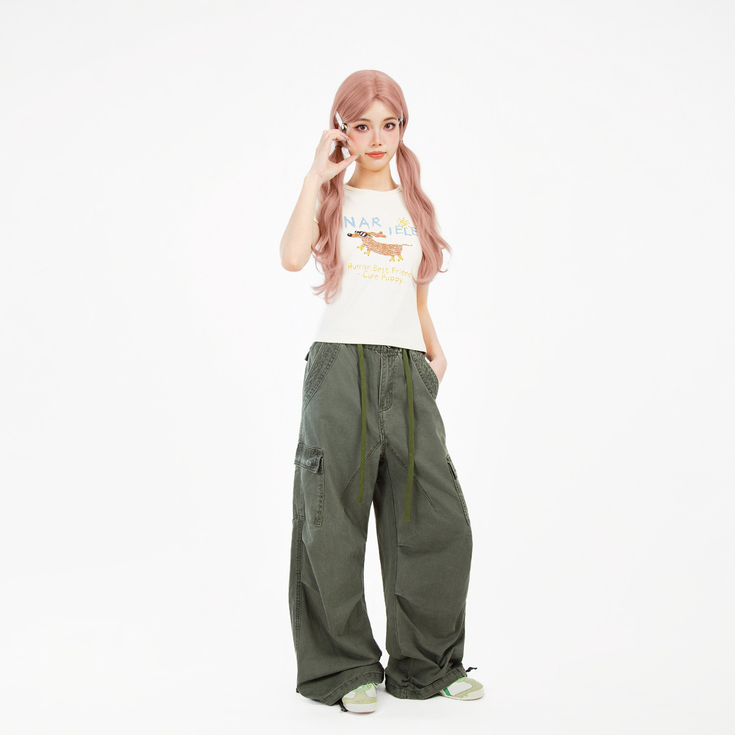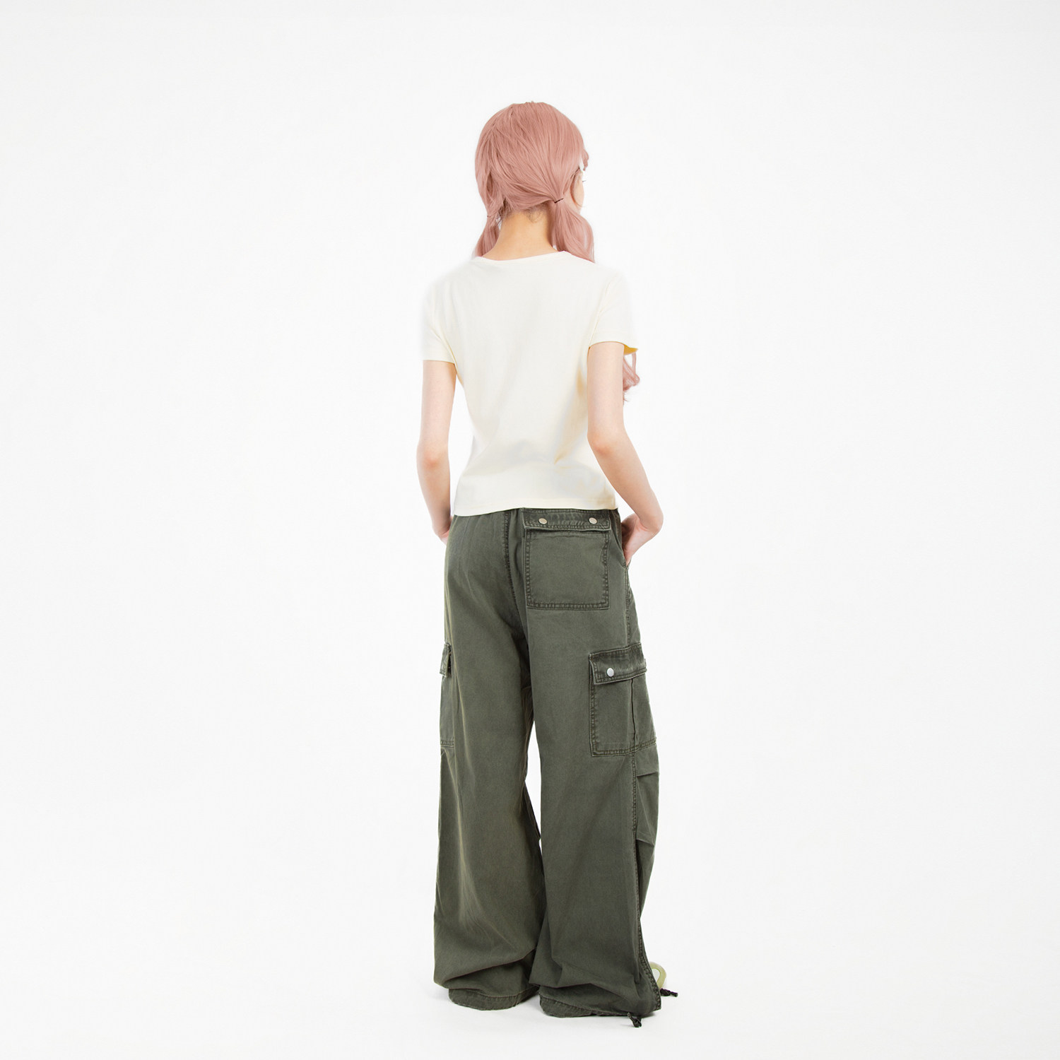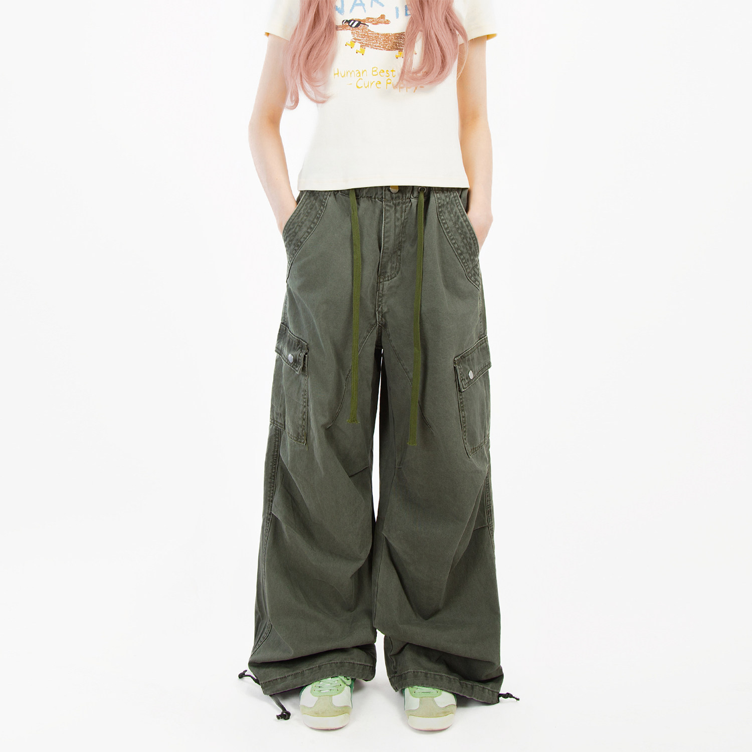 男女宽松休闲直筒设计感褶皱垂感长裤 裤 潮 复古解构多口袋工装 美式