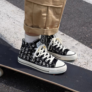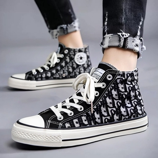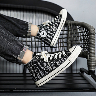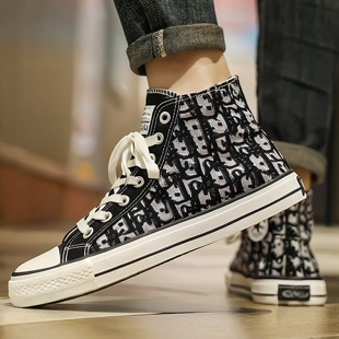 时尚 圆头高帮休闲纯色系带帆布鞋 男式 双星男鞋 百搭板鞋 新款 鞋 夏季