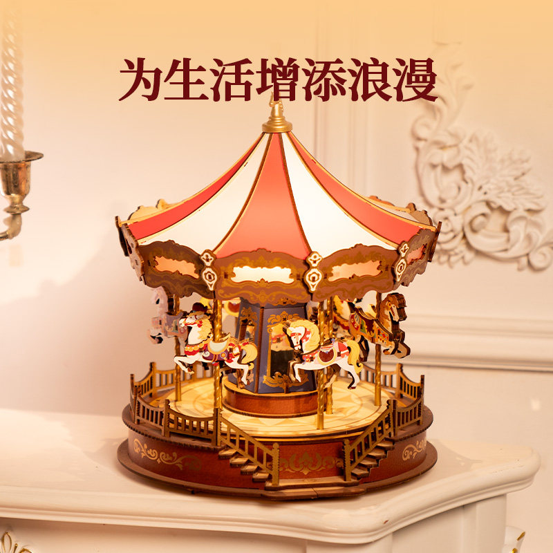 马年发光音乐盒旋转木马水晶球八音盒男女童儿童生日礼物新年礼品