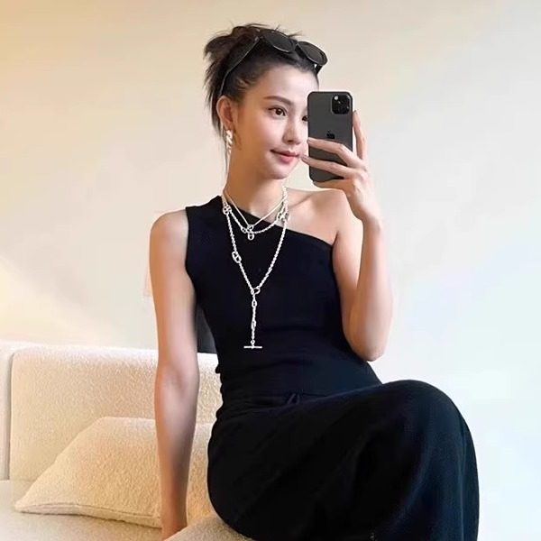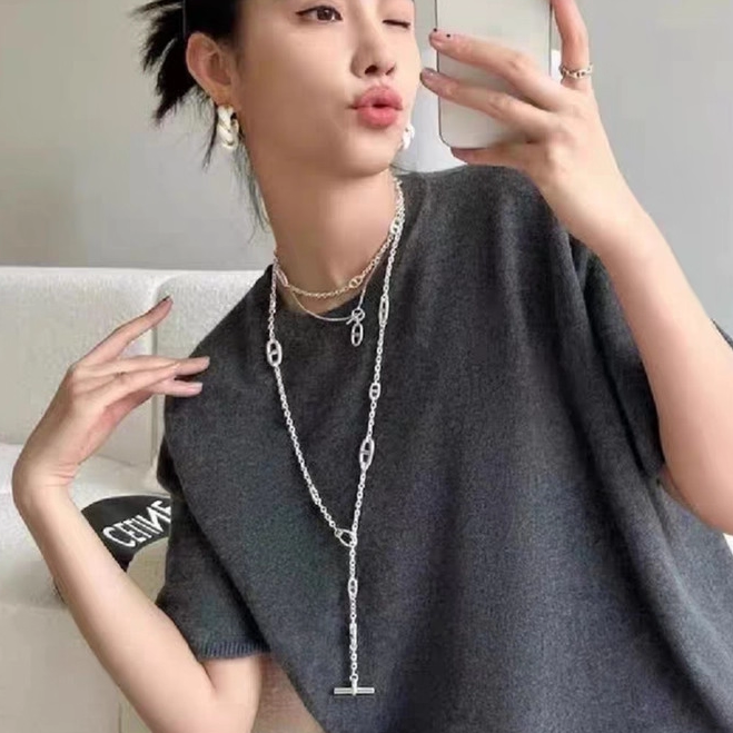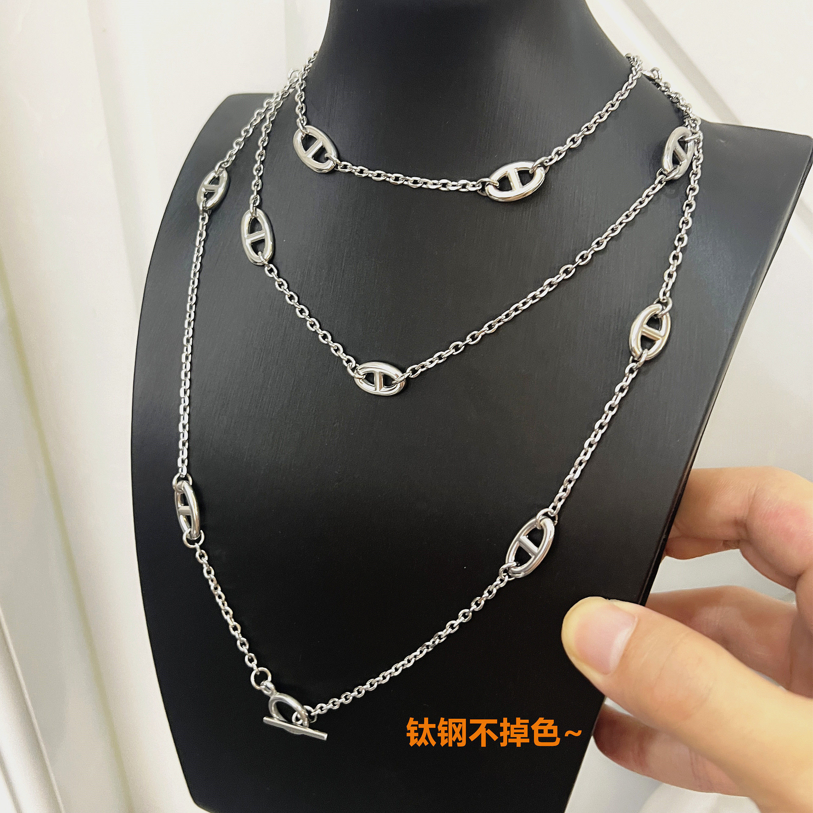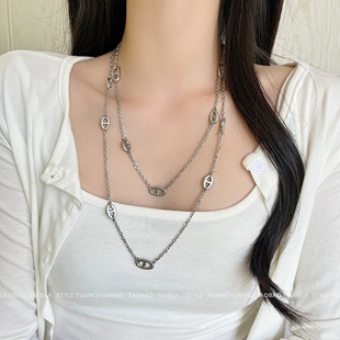 毛衣链 时髦猪鼻项链女小众设计高级感长款 闭入 钛钢不掉色网红款