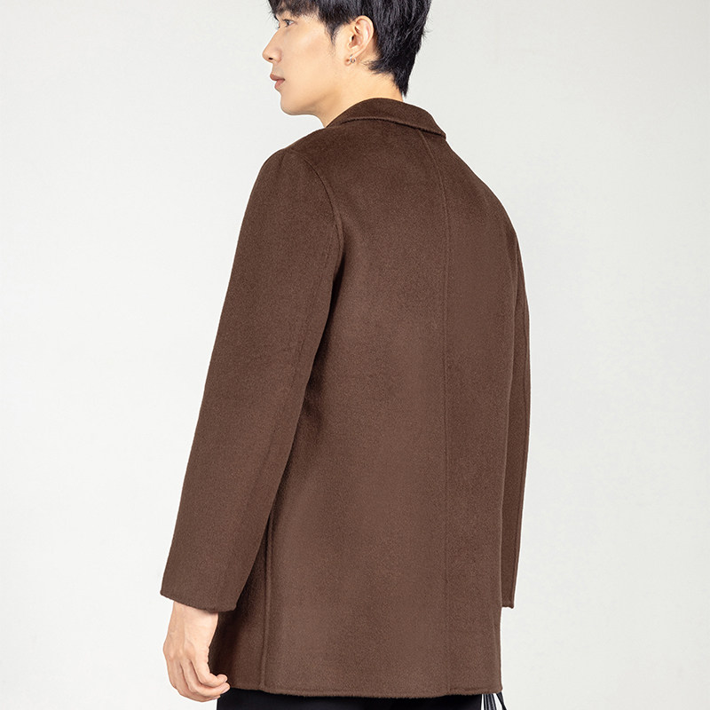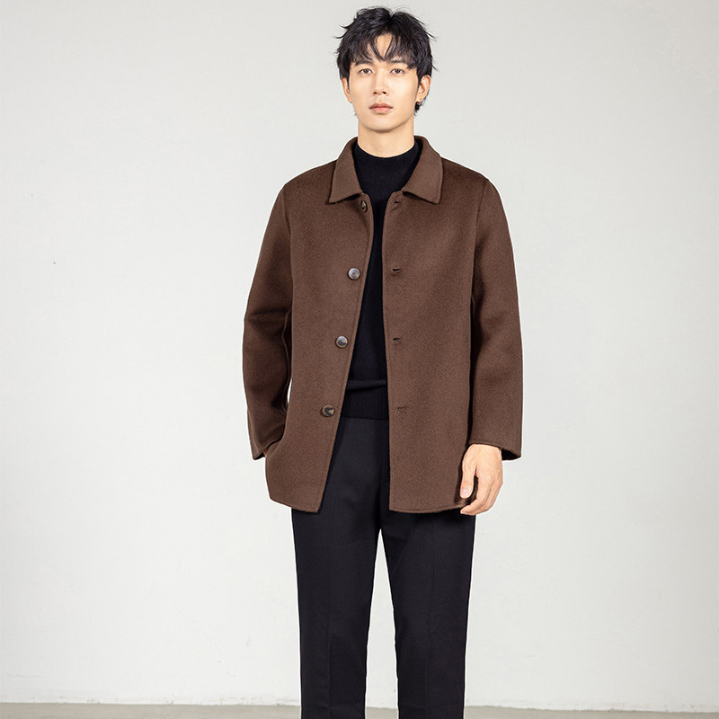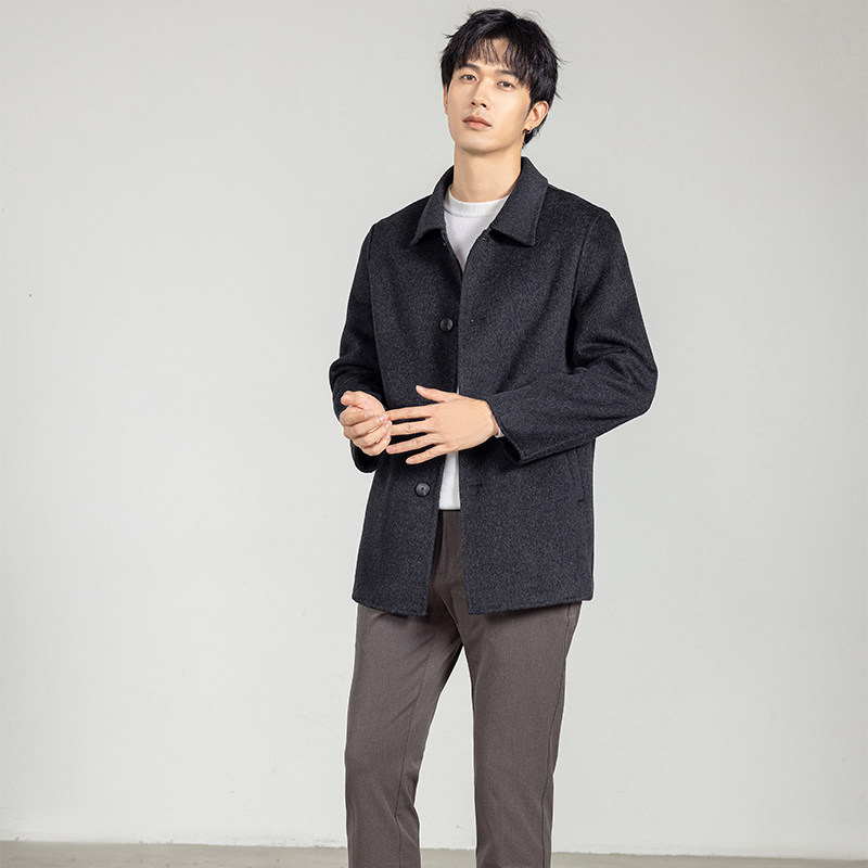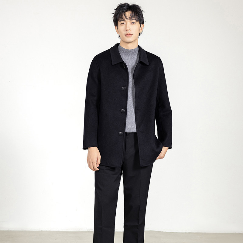 纯羊毛大衣男中长款 宽松加厚商务休闲毛呢外套 翻领双面呢大衣时尚