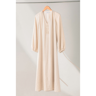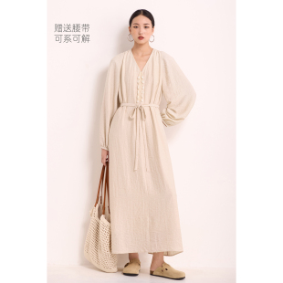 亚麻连衣裙贝壳长裙女装 设计感复古简约宽松慵懒风 2026春夏秋新款