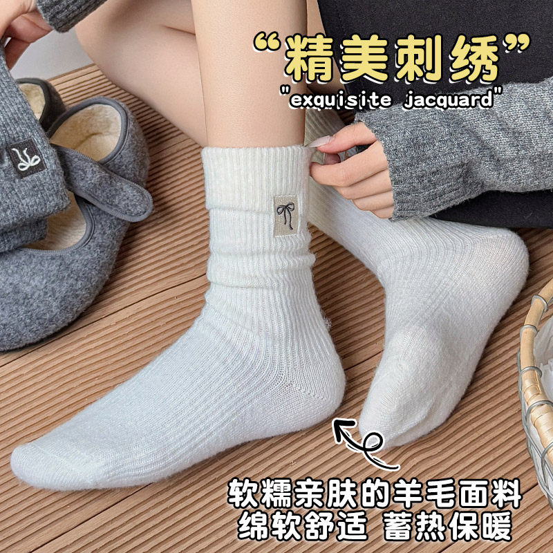 日系复古镂空羊毛小腿袜子女中筒堆堆袜秋冬保暖配靴子长筒袜靴袜