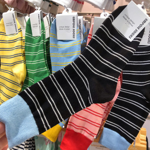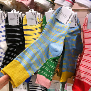 韩国进口袜子女中筒条纹拼色罗口休闲长棉袜EMPOLE秋季 6089 新款