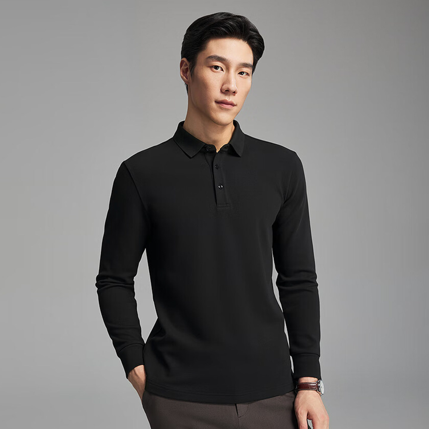 黑色高端专柜正品 t恤polo衫 秋PC519962ACA 长袖 吊牌980雅戈尔男士