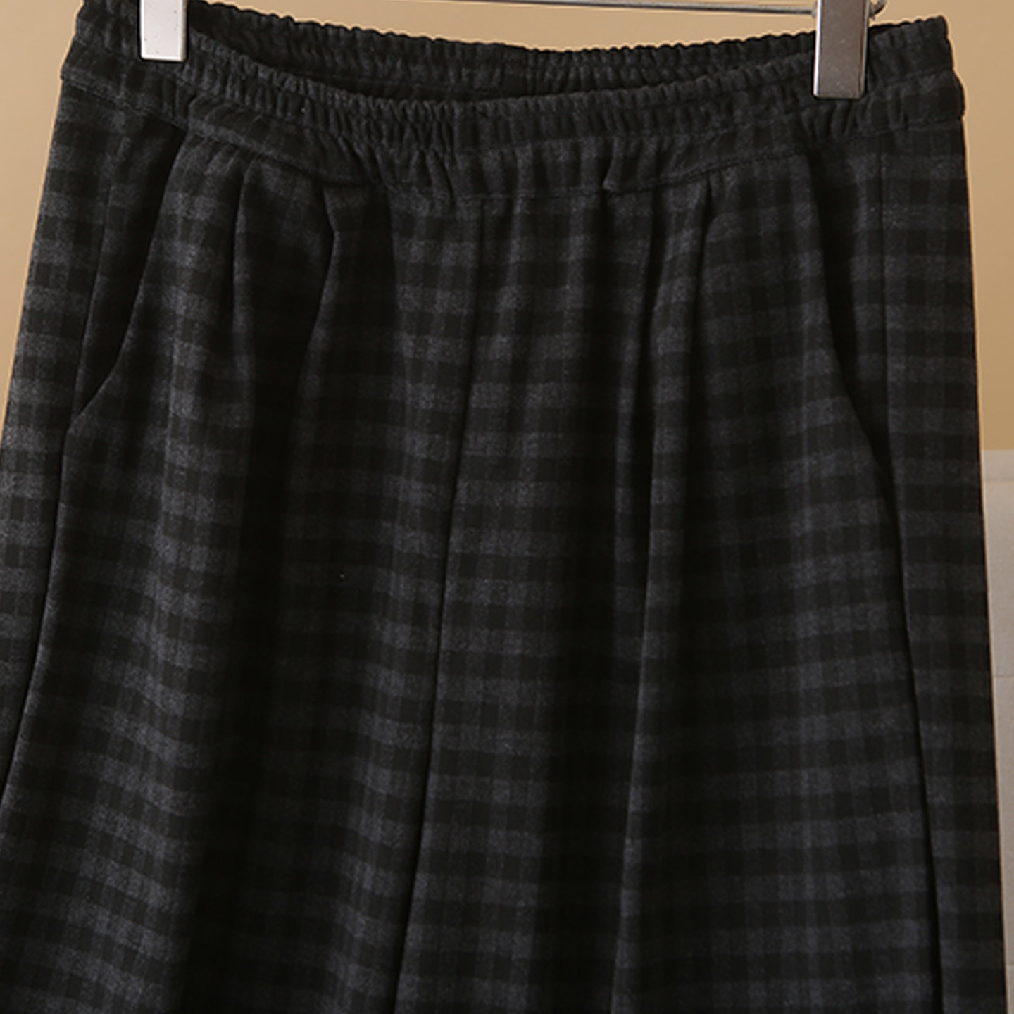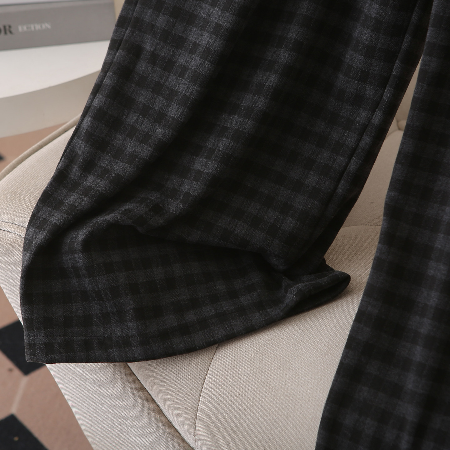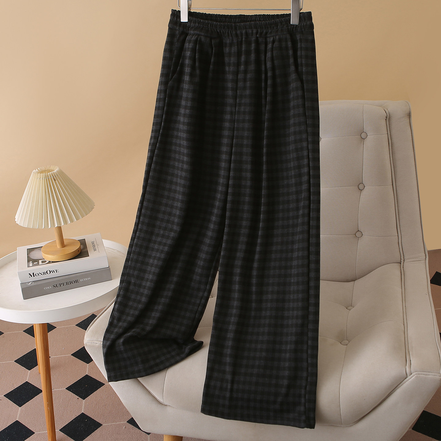 显瘦宽松慵懒垂感直筒阔腿裤 加绒胖mm大码 女冬季 黑灰色格子休闲裤