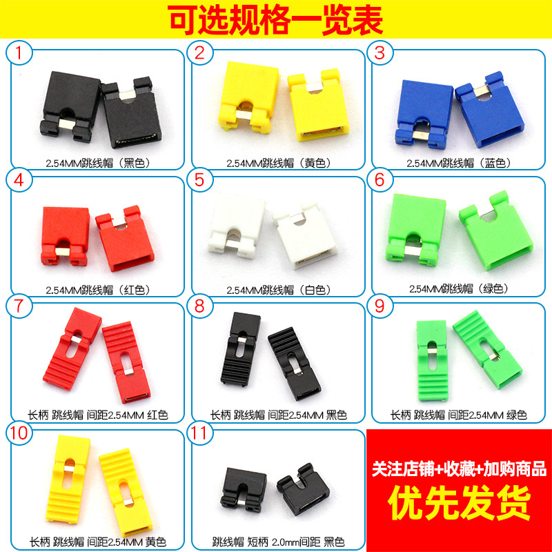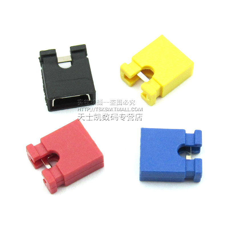 跳线帽间距2.54MM黑黄蓝红色短路块连接器帽 短路帽排针长柄帽