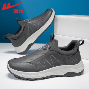 防泼水皮面老人鞋 子一脚蹬软底休闲健步鞋 中老年人爸爸鞋 回力男鞋