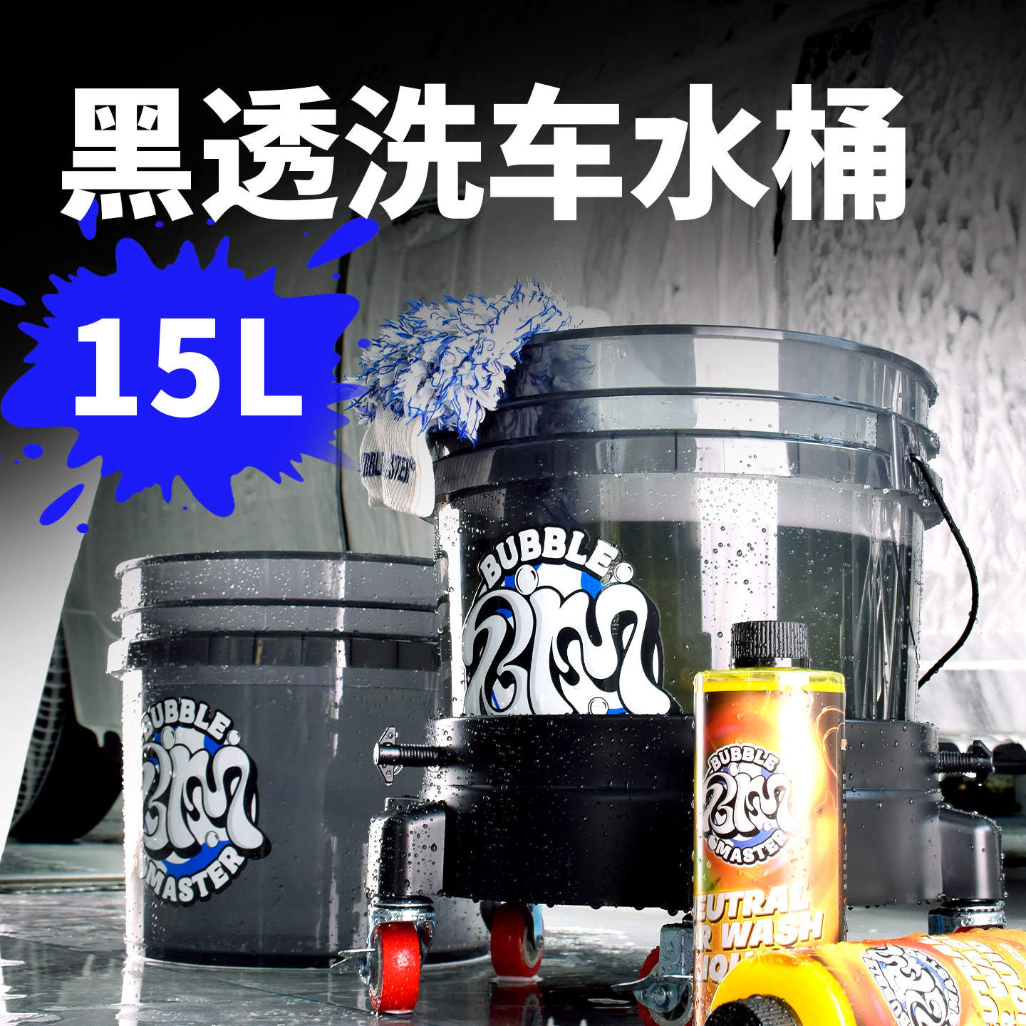 Bubble Master汽车手提两桶水洗车专用带盖过滤网水桶工具收纳箱