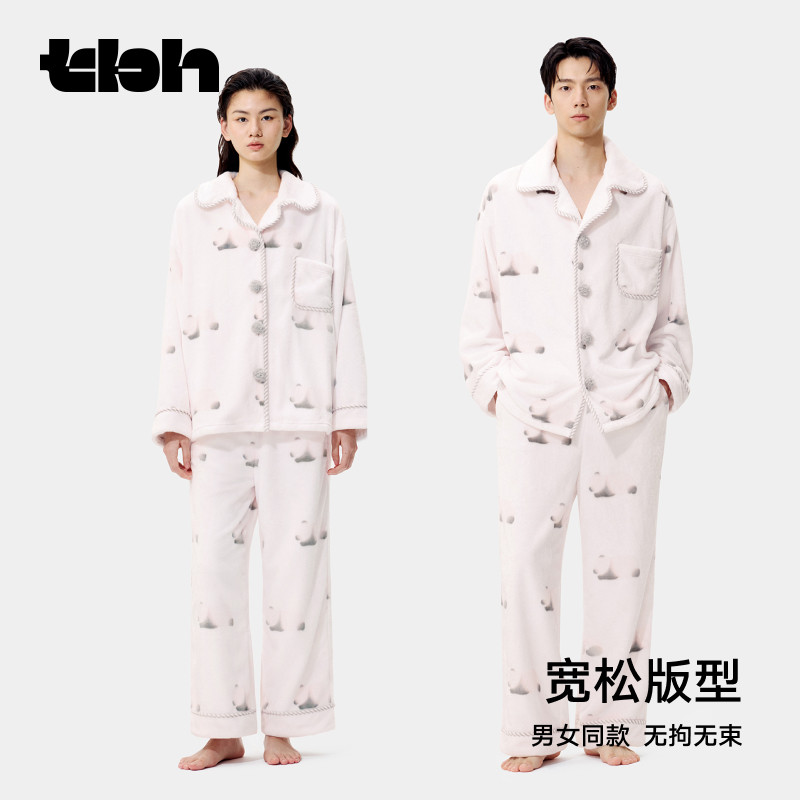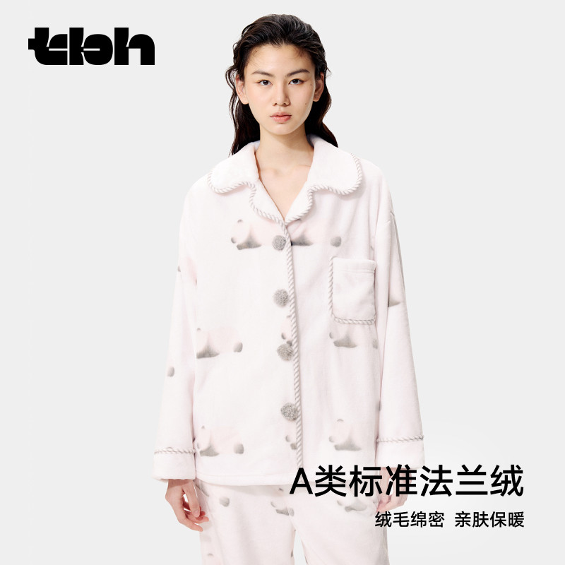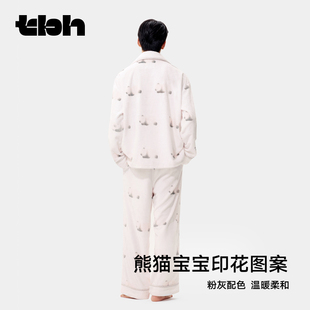 tbh野兽派家居熊猫嘭嘭法兰绒家居服套装 秋冬加厚可外穿睡衣女