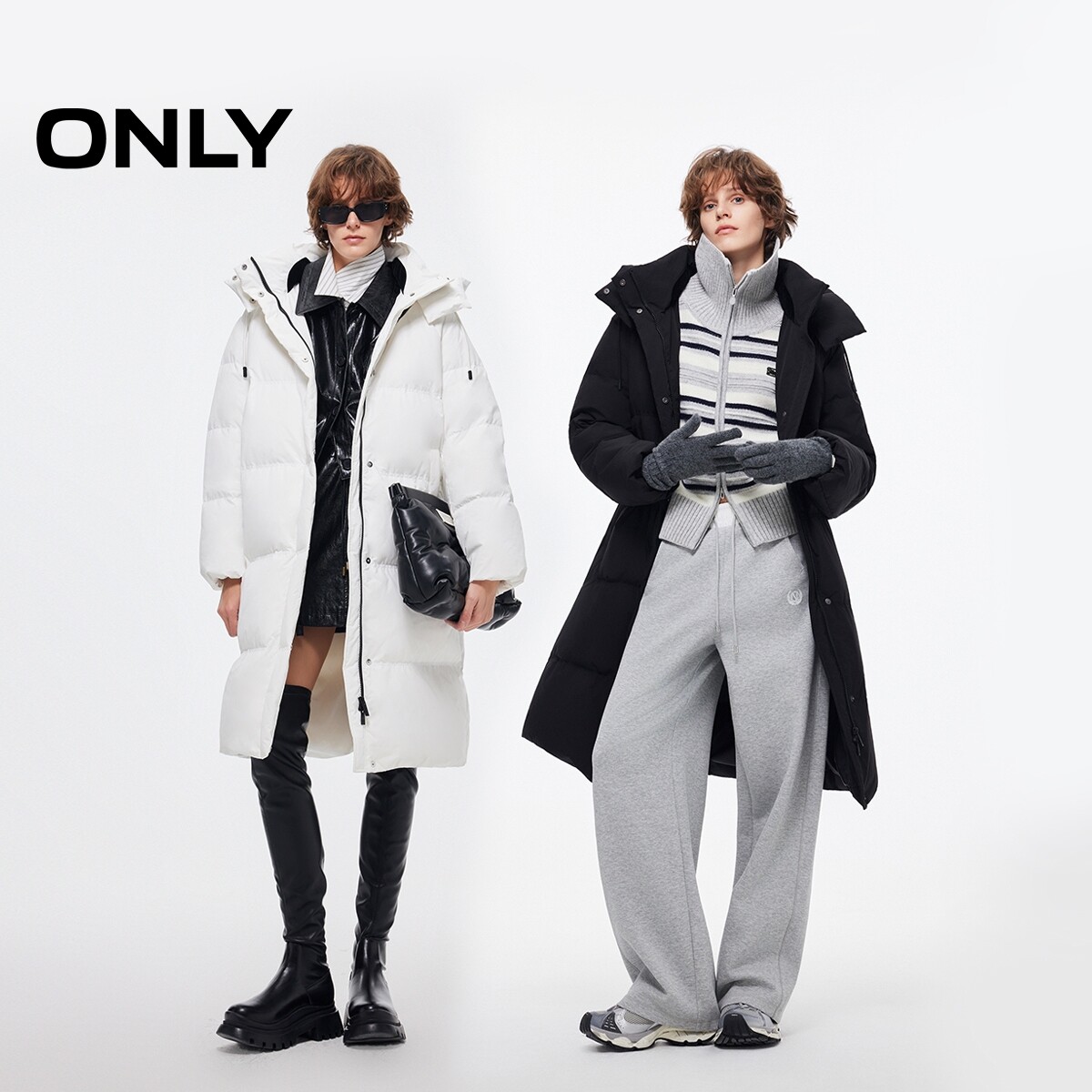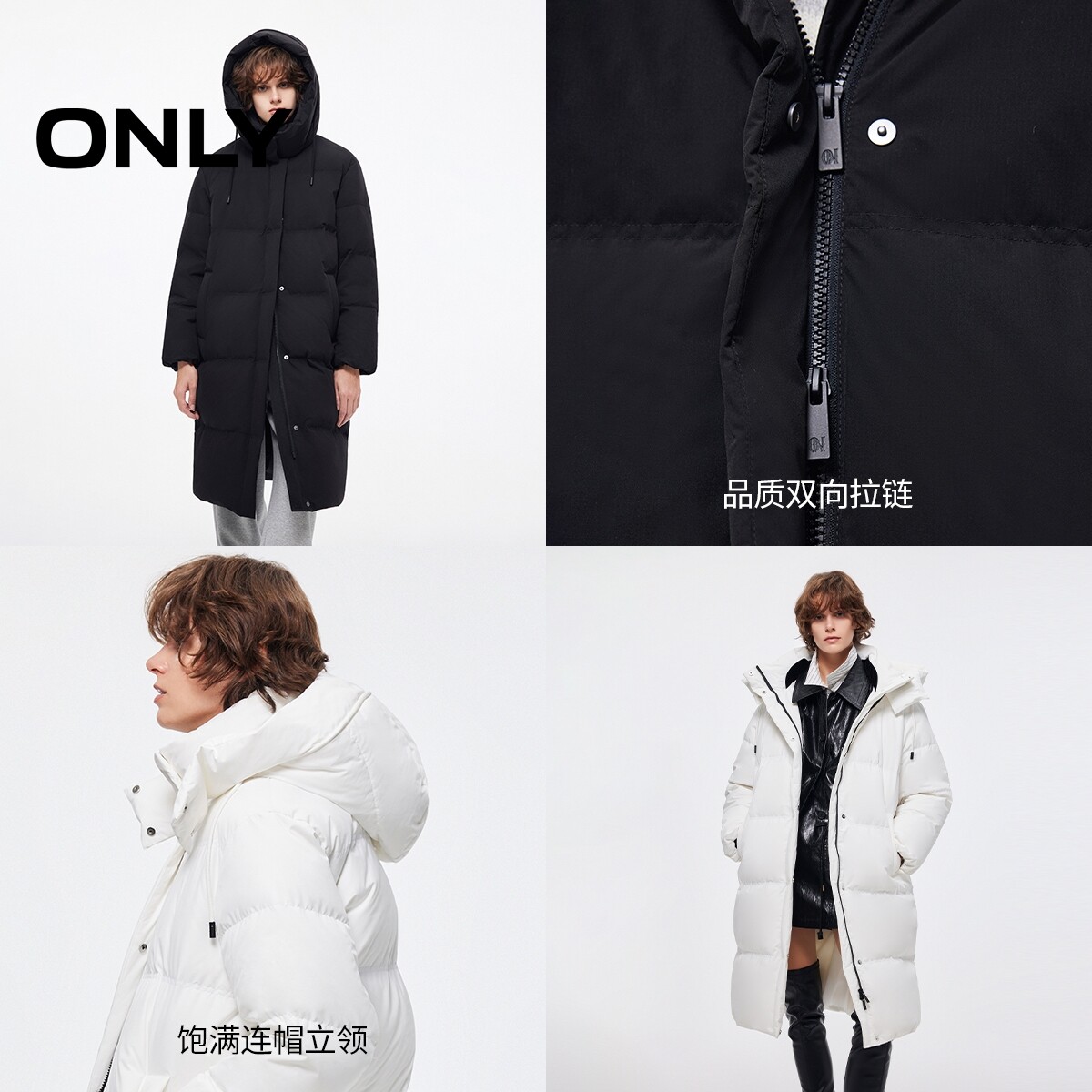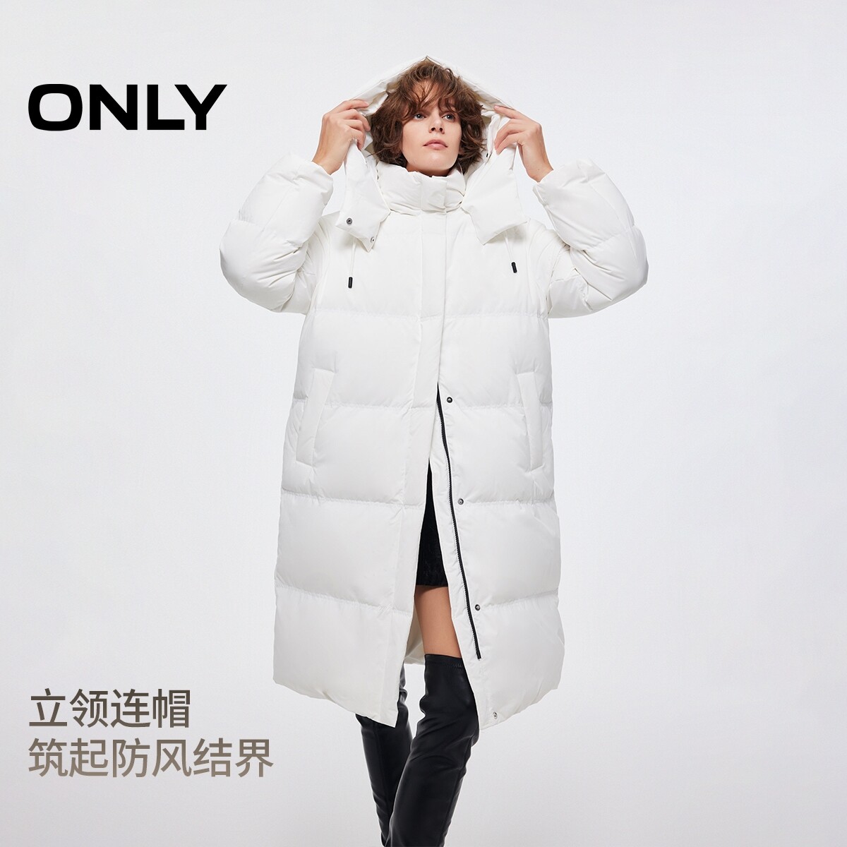 羽绒服女 90白鸭绒立领连帽中长款 125412014 新款 ONLY2025冬季